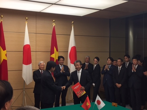 15日、日本の首相官邸で、ベトナムのグエン・フー・チョン共産党書記長と日本の安倍晋三首相の立会いの下、ベトナムの航空会社ベトジェット社と日本の三菱UFJリース株式会社は、既に実施済みの航空機リースに加え、更に今後の航空機 リース契約の締結及び追加航空機に関するファイナンス提供の機会を探ることに関する覚書に署名しました。