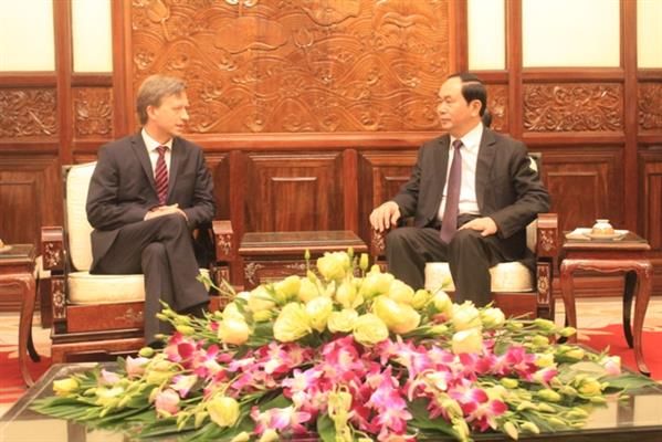 日本の ウメダ・クニオ新大使との会見で、クアン主席は日本を長期的でかつ重要なパートナーとみなすという一貫した外交政策を強調するとともに、ウメダ大使が経験を生かして、両国の架け橋としての役割を果たし、あらゆる分野での両国の協力関係の強化、地域の平和、安定、協力、発展に貢献するよう希望を表明しました。