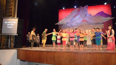 歌劇では、主役のつうにソプラノ歌手の家田紀子が、 与ひょう役は持木弘が出演した他、ベトナム側から「べトナム国立交響楽団」で日本人指揮者、「ベトナム青年劇場バレエ団」、特に、子供たちの童歌では「チルドレンパレス合唱団」で演出は人民芸術家のレフンさんでした。