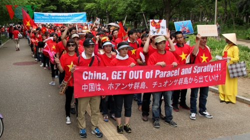 VOV東京によりますと、25日、大阪と岡山で、1300人規模のベトナム人らによる反中デモが行われました。デモでは、中国がホアンサ群島から中国が出ていくことが求められ、赤地に黄色の星のついたベトナム国旗をイメージしたTシャツを着た人々がベトナム国旗を掲げてデモ行進をしました。