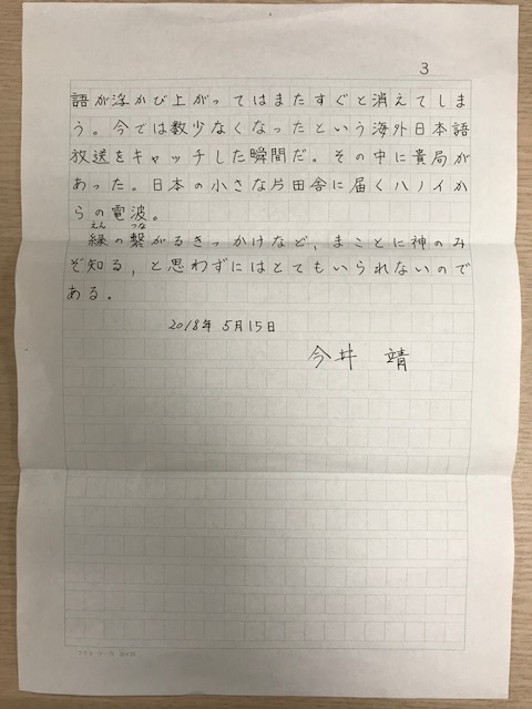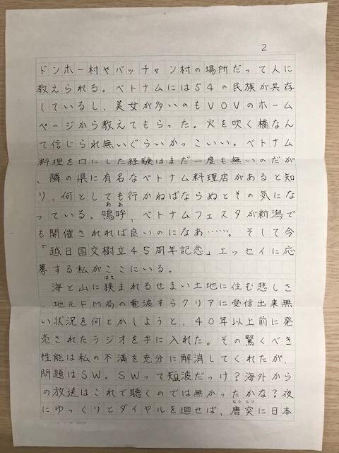 海と山に挟まれるせまい土地に住む悲しさ、地元FM局の電波すらクリアに受信出来無い状況を何とかしようと、40年以上前に発売されたラジオを手に入れた。その驚くべき性能は私の不満を充分に解消してくれたが、問題はSW。SWって短波だっけ?海外からの放送はこれで聴くのでは無かったかな?夜にゆっくりとダイヤルを廻せば、唐突に日本語が浮かび上がってはまたすぐと消えてしまう。今では数少なくなったという海外日本語放送をキャッチした瞬間だ。その中に貴局があった。日本の小さな片田舎に届くハノイからの電波。