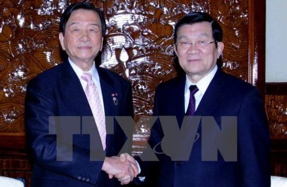 4日、ハノイで、チュオン・タン・サン国家主席は、日越堺友好協会の加藤均理事長と会見しました。席上、サン国家主席は、ビンディン省で実施中のマグロの質的向上プロジェクトを高く評価しました。