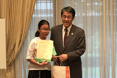 「授賞された8件の俳句は、今年のテーマに見合うものです。俳句に付いている絵画も詩の内容に合っています。私たちが驚いたのは、俳句の中で、生徒たちは、環境保全や野生動物保護、動物への愛情など我々の幅広い生活に関わる問題についても触れていたという事です。」