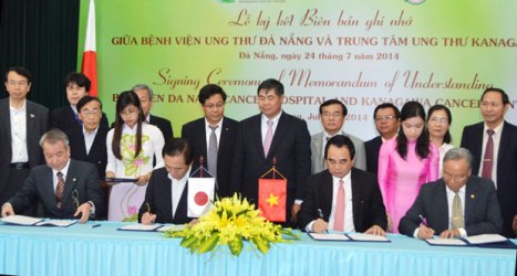 24日、中部ダナン市で、神奈川県立癌センターとダナン市癌病院との協力覚書の調印式が行われ、ダナン市人民委員会のバン・ヒュ・チエン委員長と神奈川県の黒岩・ 祐治知事が立ち会いました。