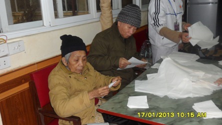 一方、会場の隅の方では、ビ・ティ・チェンさん81歳が、ティッシュペーパーを折りたたんでいます。
