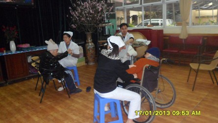 ティエン・ドゥックセンターの入居者は、最も重要なのは介護される傍ら、同じ年代の人々と交流し、共同活動に参加することが出来ます。