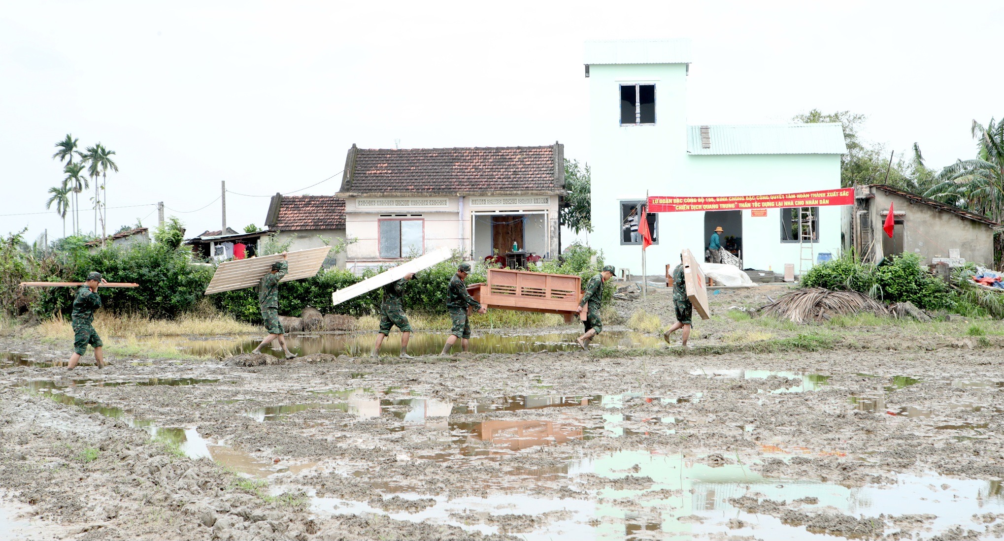 司会B:リスナーの皆さん。新しい家での輝く笑顔の背後に、ベトナム人民軍の兵士たちの揺るぎない決意の背後には、「台風が次々と」「洪水が次々と」襲った、忘れられない記憶があります。