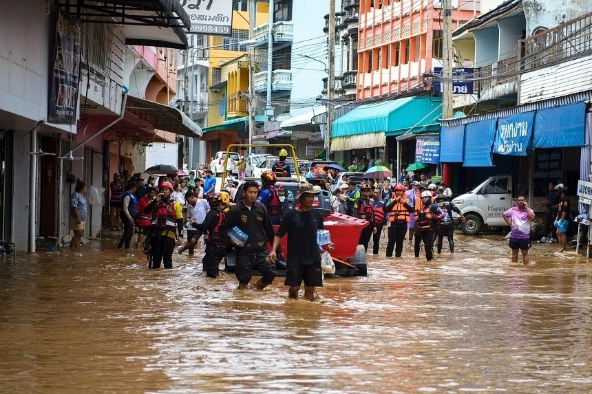 台風11号(ヤギ)の影響とみられる雨の影響で、タイ北部チェンライ県とミャンマーの国境を流れるサーイ川が9日にはん濫し、県内のメーサイ市などで洪水が発生しました。