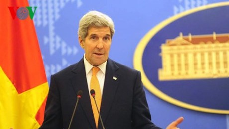 * 今週、アメリカのジョン・ケリー国務長官はベトナム訪問を行いました。ハノイで、チュオン・タン・サン国家主席はケリー国務長官と会見しました。席上、サン主席はベトナムの最大となるパートナー国の一つであるアメリカとの関係を重視していると強調しました。また、サン主席はベトナム東部海域、いわゆる南シナ海問題について「ベトナム東部海域の問題を巡る対立の解決策、及びベトナムの見解に対するアメリカと先進7カ国の見解と支持は、ベトナム東部海域における平和、安定、安全保障、航行・航空安全の維持に寄与する」を歓迎しました。一方、ケリー国務長官はベトナム東部海域での岩礁埋め立て活動を批難すると同時に関連各側に法的原則と国際法を尊重する必要があると呼びかけました。