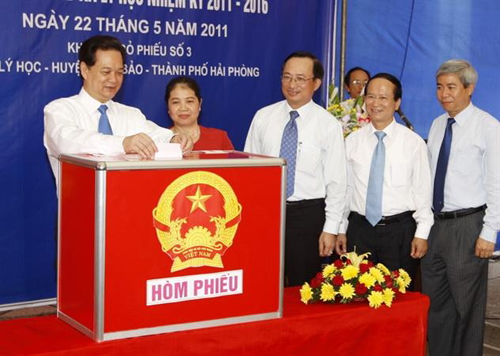5月22日、ベトナムの有権者は2011年から2016年までの任期におけるベトナム国会第8期及び各レベル人民評議会選挙の投票を行い、投票率は99%に達しました。第8期ベトナム国会第1回会議では、チョン・タン・サン氏が国家主席に、グェン・タン・ズン氏は首相に、グェン・シン・フン氏は国会議長に賛成多数で選出されました。これは新たな指導部に対する有権者の高い信頼度を示すものです。