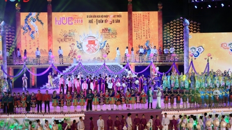 (VOVWORLD) - សិល្បករសិល្បការិនីចំនួន ៤០០ នាក់មកពីក្រុមសិល្បៈអន្តរជាតិចំនួន ២៤ ក្រុមបានជួបជុំក្នុងរាត្រីសម្តែងគួរឲ្យចាប់អារម្ភណ៍យ៉ាងខ្លាំងនៅ Festival Hue ឆ្នាំ ២០១៨។ គេបាននាំមកនូវពណ៌ចម្រុះនៃវប្បធម៌ប្រពៃណីបណ្ដាជនជាតិលើពិ ភពលោក រួមចំណែកចូលក្នុងផ្ទាំងគំនូរវប្បធម៌សម្បូរបែបនៅព្រឹត្តិការណ៍នេះ។