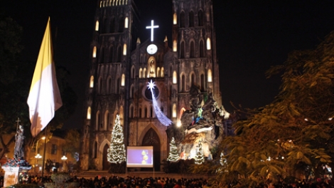 Vovworld-ក្នុងប៉ុន្មានថ្ងៃនេះ បរិយាកាសបុណ្យគ្រីសម៉ាស់ បានក្រូបដណ្ដប់ទៅលើគ្រប់វិថីទីក្រុងហាណូយ។ ហាណូយត្រូវបានតុបតែងដ៏ស្អាតដោយដើមស្រន លោកតា Noel ជាដើម។ រួមជាមួយជនរួមជាតិគ្រឹស សាសនិកលើទូទាំងប្រទេស បុព្វជិកហាណូយចំនួន១៨៥ពាន់នាក់កំពុងស្វាគម បុណ្យគ្រីសម៉ាស់មួយសុខសាន្តត្រាណសុភមង្គល។