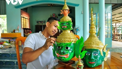 (VOVWORLD) - សិប្បកម្មធ្វើមកុដនិងរបាំងមុខដោយដៃរបស់ប្រជាជនខ្មែរគឺជាលក្ខណៈវប្បធម៌ពិសេសតែមួយគត់ ដែលផ្សាភ្ជាប់យ៉ាងជិតស្និទ្ធជាមួយនឹងសិល្បៈរបាំប្រជាប្រិយ របាំល្ខោនខោល របាំយីគេ ព្រមទាំងក្នុងជីវភាពខាងវិញ្ញាណផងដែរ។ មកុដនីមួយៗ និងរបាំងមុខនីមួយៗសុទ្ធតែមានព្រលឹង ជំនឿ និងអត្តសញ្ញាណវប្បធម៌របស់ប្រជាជនខ្មែរ។