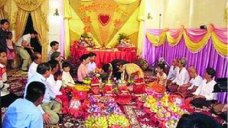 (VOVworld)- ចំពោះជនជាតិខ្មែរ ពិធីរៀបអាពាហ៍ ពិពាហ៍ជាព្រឹត្តិការណ៍សំខាន់ បំផុតសម្រាប់ជីវិត ពួកគេម្នាក់ៗ។ ពីមុនឪពុកម្ដាយជាអ្នកទុកដាក់កូន ចៅឲ្យមាន គូស្រករ ប៉ុន្ដែបច្ចុប្បន្ននេះយុវជន យុវតី ខ្មែរភាគច្រើនមានសេរីភាពក្នុងការជ្រើស រើសគូស្រកររបស់ខ្លួន និងធ្វើ ការស្វែងយល់ចិត្តគ្នា មុននឹងឈានដល់ការរៀប អាពាហ៍ពិពាហ៍។ពិធី រៀបអាពាហ៍ពិពាហ៍ខ្មែរជាពិធីប្រពៃណីមួយដែលតម្រូវឲ្យមានកម្មវិធីជា ច្រើនដូចជា សូត្រមន្ដ កាត់សក់់ ចងដៃ ជាដើម។ ពិធីនេះបានបង្ហាញ ពីវប្បធម៌ដ៏ស្រស់ស្អាតរបស់ជនជាតិខ្មែរ។
