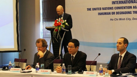 (VOVworld) - សិក្ខាសាលាអន្តរជាតិអំពីអនុសញ្ញាអន្តរ ជាតិប្រឆាំងការធ្វើទារុណកម្មនិងការប្រព្រឹត្តិឬដាក់ ទណ្ឌកម្មដ៏ឃោឃៅ អមនុស្សធម៌ឬបង្ខួចកិត្តិយស ត្រូវបាននាយកដ្ឋានបណ្ដាអង្គការអន្តរជាតិនៃក្រសួង ការបរទេសវៀតណាមរៀបចំឡើងនាព្រឹកថ្ងៃទី៨ ធ្នូ នៅទីក្រុងហូជីមិញ ភាគខាងត្បូងវៀតណាម។