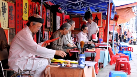 នាព្រឹកថ្ងៃទី១៩មករា វិថីអ្នកសរសេរអក្សរបុរាណ (វិថីOng do)អបអរទទួល ឆ្នាំថ្មី ប្រពៃណីវៀតណាមឆ្នាំ មមីរឯកស័គ២០១៤ចាប់ផ្តើមសកម្មភាពនៅទីក្រុង ហូជីមិញភាគខាងត្បូងវៀតណាម។