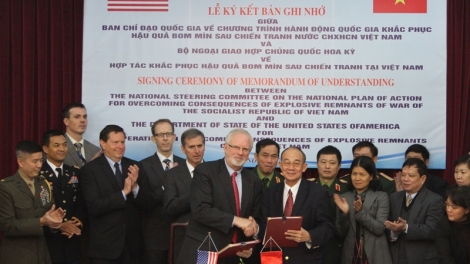 Vovworld-ពិធីចុះហត្ថលេខាលើអនុស្សារណៈយោគយល់គ្នារវាងគណៈកម្មាធិការបញ្ជារដ្ឋអំពីកម្មវិធីសកម្មភាពជាតិជំនះពុះពារលើផលវិបាកដោយគ្រាប់បែកមីនក្រោយសង្គ្រាមវៀតណាមនិងក្រសួងការបរទេសអាមេរិកស្ដីពីកិច្ចសហប្រតិបត្តិការជំនះពុះពារលើផលវិបាកដោយគ្រាប់បែកមីនក្រោយសង្គ្រាមនៅវៀតណាម