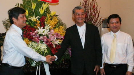 ថ្នាក់ដឹកនាំរណសិរ្សមាតុភូមិវៀតណាមនឹងថ្នាក់ដឹកនាំតំបន់នានាទៅសាកសួរសុខទុកជូនពរប្រជាសាសនិកកាតុលិច