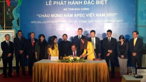 (VOVWORLD) -ជួយជ្រោមជ្រែងសប្ដាហ៍ជាន់ខ្ពស់ APEC នាថ្ងៃទី៦វិច្ឆិកា នៅទីក្រុងហាណូយបានប្រព្រឹត្តទៅពិធីចេញផ្សាយកម្រងតែម”៖អបអរសាទរឆ្នាំ APEC វៀតណាម ២០១៧”។