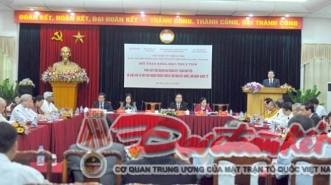 (VOVworld) - ក្នុងឱកាសរំលឹកខួបអនុស្សាវរីយ៍លើកទី ៨៥ទិវាប្រពៃណីរបស់ រណសិរ្សមាតុភូមិវៀតណាម នា ព្រឹកថ្ងៃទី៩ វិច្ឆិកា នៅរដ្ឋធានីហាណូយបាន ប្រព្រឹត្តទៅ សិក្ខាសាលាវិទ្យាសាស្ត្រក្រោមប្រធានបទ “ពង្រីក កម្លាំងមហាសាមគ្គី ភាពជាតិទាំងមូលនិងប្រជាធិបតេយ្យសង្គមនិយមក្នុងសម័យកាលផ្លាស់ប្ដូរថ្មី ប្រទេសជាតិ សមាហរណកម្មអន្តរជាតិ”។