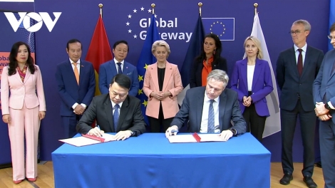 (VOVWORLD) - នាថ្ងៃទី ២៥ ខែតុលា នៅទីក្រុងប្រ៊ុចសែល (បែលហ្សិក) ក្នុងឱកាសចូលរួមវេទិកាច្រកទ្វារសកល (Forum Global Gateway) ឧបនាយករដ្ឋមន្ត្រី លោក Tran Hong Ha បានជួបពិភាក្សាការងារជាមួយប្រធានគណៈកម្មការអឺរ៉ុប (EC) លោកស្រី Ursula von der Leyen។