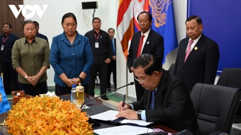 (VOVWORLD) - នាព្រឹកថ្ងៃទី២៥ ខែតុលា នៅទីស្នាក់ការកណ្តាលគណបក្សប្រជាជនកម្ពុជា (CPP) នៅរាជធានីភ្នំពេញ ព្រះរាជាណាចក្រកម្ពុជា ប្រធាន CPP សម្តេចតេជោ ហ៊ុន សែន និងថ្នាក់ដឹកនាំគណបក្សនយោបាយចំនួន២៧ទៀតនៅកម្ពុជា បានចុះហត្ថលេខាលើ “កិច្ចព្រមព្រៀងសហប្រតិបត្តិការ និងសម្ព័ន្ធភាពរវាងបណ្តាគណបក្សនយោបាយនៅកម្ពុជា”។