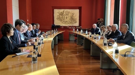(VOVWORLD) - ក្នុងក្របខ័ណ្ឌនៃដំណើរទស្សនកិច្ចការងារនៅកោះ Corse ចាប់ពីថ្ងៃទី ២៣ ដល់ថ្ងៃទី ២៥ ខែតុលា នាថ្ងៃទី ២៣ តុលា នៅទីក្រុង Ajaccio នៃខេត្ត Corse-du-Sud ឯកអគ្គរដ្ឋទូតវៀតណាមប្រចាំនៅប្រទេសបារាំង លោក Dinh Toan Thang បានអញ្ជើញជួបពិភាក្សាការងារជាមួយ លោក Alexandre Vinciguerra សមាជិកអចិន្ត្រៃយ៍នៃក្រុមប្រឹក្សាប្រតិបត្តិ Corsican ទទួលបន្ទុកផ្នែកសេដ្ឋកិច្ច និងហិរញ្ញវត្ថុ ប្រធានទីភ្នាក់ងារអភិវឌ្ឍន៍ Corse តំណាងឱ្យប្រធានក្រុមប្រឹក្សាប្រតិបត្តិតំបន់ Corse។