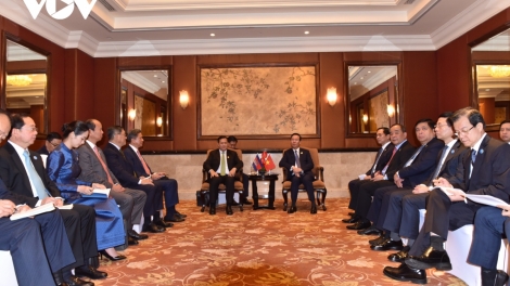 (VOVWORLD) - នាថ្ងៃទី ១៨ តុលា ក្នុងឱកាសអញ្ជើញចូលរួមវេទិកាជាន់ខ្ពស់នៃកិច្ចសហប្រតិបត្តិ ការអន្តរជាតិ “ខ្សែក្រវាត់ និងផ្លូវ” លើកទី៣ នៅទីក្រុងប៉េកាំង ប្រទេសចិន ប្រធានរដ្ឋ វៀតណាមលោក Vo Van Thuong បានទទួលជួបនាយករដ្ឋមន្រ្តីកម្ពុជា លោក ហ៊ុន ម៉ាណែត។ នេះជាជំនួបផ្ទាល់លើកដំបូងរវាងមេដឹកនាំទាំងពីរចាប់តាំងពីលោកប្រធាន រដ្ឋ Vo Van Thuong និងលោកនាយករដ្ឋមន្ត្រី ហ៊ុន ម៉ាណែត ឡើងកាន់តំណែងថ្មី។
