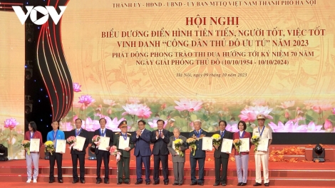(VOVWORLD) - នាព្រឹកថ្ងៃទី៩ តុលា នៅទីក្រុងហាណូយ នាយករដ្ឋមន្ត្រីវៀតណាមលោក Pham Minh Chinh បានអញ្ជើញចូលរួមសន្និសីទលើកតម្កើងគំរូជឿនលឿន “មនុស្សល្អ ការ ងារល្អ” "ពលរដ្ឋរដ្ឋធានីឆ្នើម" ឆ្នាំ ២០២៣ និងបំផុសចលនាប្រឡងប្រណាំងឆ្ពោះទៅ ខួបលើកទី ៧០ ទិវារំដោះរដ្ឋធានី។