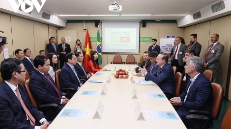 (VOVWORLD) - ក្នុងឱកាសនៃដំណើរទស្សនកិច្ចផ្លូវការរបស់នាយករដ្ឋមន្ត្រីវៀតណាម លោក Pham Minh Chinh ទៅកាន់ប្រទេសប្រេស៊ីល និងជួបពិភាក្សាជាមួយប្រធានា ធិបតីប្រេស៊ីល Luiz Inácio Lula da Silva ភាគីទាំងពីរបានចេញសេចក្តីថ្លែងការណ៍រួម ដែលសង្កត់ធ្ងន់លើសារៈសំខាន់នៃភាពសុខដុមរមនាអំពីកំណើនសេដ្ឋកិច្ច ការអភិវឌ្ឍសង្គម និងកិច្ចការពារបរិស្ថាន។