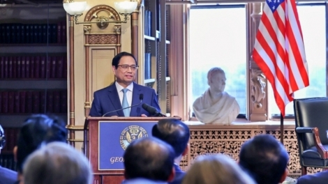 (VOVWORLD) - ក្នុងឱកាសចូលរួមសប្តាហ៍ជាន់ខ្ពស់នៃសម័យប្រជុំលើកទី ៧៨ នៃមហាសន្និបាតអង្គការសហប្រជាជាតិ និងសកម្មភាពទ្វេភាគីនៅសហរដ្ឋអាមេរិក នាព្រឹកថ្ងៃទី ១៩ ខែកញ្ញា - ម៉ោងក្នុងតំបន់) នាយករដ្ឋមន្ត្រី លោក Pham Minh Chinh បានអញ្ជើញទៅទស្សនា និងថ្លែងសុន្ទរកថាគោលនយោបាយនៅ សាកលវិទ្យាល័យ Georgetown ក្នុងទីក្រុងវ៉ាស៊ីងតោន-ជាកន្លែងដែលអ្នកនយោបាយពិភពលោកជាច្រើនបានទៅទស្សនា និងធ្វើសេចក្តីថ្លែងការណ៍គោលនយោបាយនៅទីនេះផងដែរ។