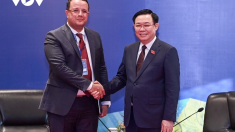 (VOVWORLD) - នាយប់ថ្ងៃទី ១៥ កញ្ញា ប្រធានរដ្ឋសភា លោក Vuong Dinh Hue បានទទួលជួបអនុប្រធានរដ្ឋសភាអាល់ហ្សេរី លោក Monder Bouden ក្នុងឱកាសនៃសន្និសីទសមាជិកសភាវ័យក្មេងជាសកលលើកទី ៩ ដែលប្រព្រឹត្តទៅនៅទីក្រុងហាណូយ។នាយប់ថ្ងៃទី ១៥ កញ្ញា ប្រធានរដ្ឋសភា លោក Vuong Dinh Hue បានទទួលជួបអនុប្រធានរដ្ឋសភាអាល់ហ្សេរី លោក Monder Bouden ក្នុងឱកាសនៃសន្និសីទសមាជិកសភាវ័យក្មេងជាសកលលើកទី ៩ ដែលប្រព្រឹត្តទៅនៅទីក្រុងហាណូយ។