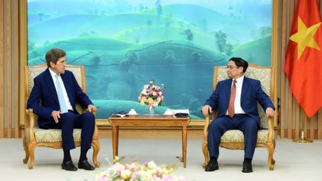 លោកនាយករដ្ឋមន្ត្រី Pham Minh Chinh ទទួលជួបបេសកជនពិសេសរបស់ប្រធានាធិបតីអាមេរិកទទួលបន្ទុកអាកាសធាតុ លោក John Kerry