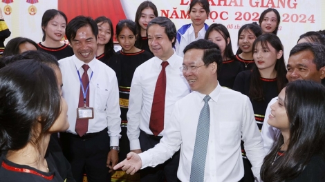 (VOVWORLD) - នាព្រឹកថ្ងៃទី៥ ខែកញ្ញា ពិធីបើកបវេសនកាលឆ្នាំសិក្សាថ្មី ២០២៣ - ២០២៤ បានប្រព្រឹត្តទៅនៅតាមសាលារៀននានាក្នុងប្រទេសវៀតណាម។ សិស្សានុសិស្សវៀត ណាមជាង ២២លាននាក់បានចូលរួមព្រឹត្តិការណ៍ដ៏មានអត្ថន័យនេះ។