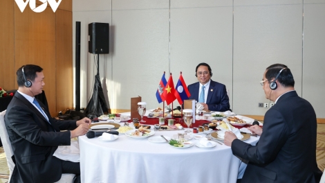 (VOVWORLD) - នាព្រឹកថ្ងៃទី៥ ខែកញ្ញា ក្នុងឱកាសអញ្ជើញចូលរួមកិច្ចប្រជុំកំពូលសមាគម ប្រជាជាតិអាស៊ីអាគ្នេយ៍ (អាស៊ាន) លើកទី៤៣ និងកិច្ចប្រជុំពាក់ព័ន្ធនៅទីក្រុង ហ្សាកាតា ប្រទេសឥណ្ឌូនេស៊ី នាយករដ្ឋមន្ត្រីវៀតណាមលោក Pham Minh Chinh បានអញ្ជើញចូលរួមទទួលទានអាហារពេលព្រឹកនិងពិភាក្សាការងារជាមួយនាយករដ្ឋមន្ត្រីឡាវ លោក Sonexay Siphandone និងនាយករដ្ឋមន្ត្រីកម្ពុជាលោក ហ៊ុន ម៉ាណែត។