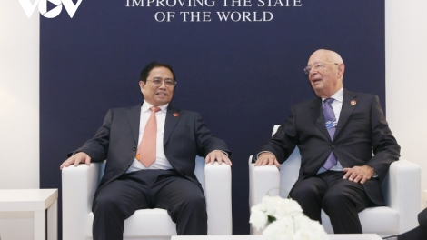 (VOVWORLD) - ក្នុងក្របខ័ណ្ឌនៃកិច្ចប្រជុំវេទិកាសេដ្ឋកិច្ចពិភពលោក (WEF) ទីក្រុង Tianjin នារសៀលថ្ងៃ ២៦ មិថុនានេះ នៅទីក្រុង Tianjin ប្រទេសចិន នាយករដ្ឋមន្ត្រី លោក Pham Minh Chinh បានទទួលជួបលោកសាស្ត្រាចារ្យ Klaus Schwab ស្ថាបនិក និងជាប្រធានប្រតិបត្តិ WEF។