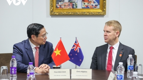 (VOVWORLD) - ក្នុងឱកាសចូលរួមវេទិកាសេដ្ឋកិច្ចពិភពលោក (WEF) នៅទីក្រុង Tianjin ប្រទេសចិន នាព្រឹកថ្ងៃទី ២៧ មិថុនា នាយករដ្ឋមន្ត្រីលោក Pham Minh Chinh បានជួបពិភាក្សាទ្វេភាគីជាមួយនាយករដ្ឋមន្ត្រីនូវែលសេឡង់ Chris Hipkins។