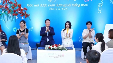 (VOVWORLD) - នេះជាដំណើរទស្សនកិច្ចផ្លូវរដ្ឋលើកដំបូងនៅវៀតណាមរបស់ប្រធានាធិបតីកូរ៉េខាងត្បូងលោក Yoon Suk Yeol ហើយវៀតណាមក៏ជាប្រទេសអាស៊ីអាគ្នេយ៍ដំបូងគេដែលលោកប្រធានាធិបតី Yoon Suk Yeol មកបំពេញទស្សនកិច្ចក្រោយពីចូលកាន់តំណែងកាលពីខែឧសភាឆ្នាំមុន។