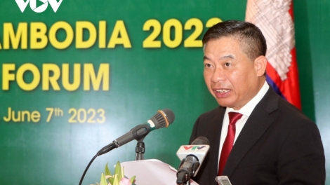 (VOVWORLD) - កាលពីរសៀលថ្ងៃទី ៧ មិថុនា នៅរាជធានីភ្នំពេញ កម្ពុជា បានប្រារព្ធវេទិកា ជំរុញពាណិជ្ជកម្មវៀតណាម-កម្ពុជា ឆ្នាំ២០២៣។