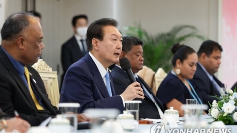 (VOVWORLD) - ប្រធានាធិបតីកូរ៉េខាងត្បូងលោក Yoon Suk-yeol នៅថ្ងៃទី ២៩ ឧសភា បានធ្វើជាប្រធាននៃកិច្ចប្រជុំកំពូលកូរ៉េខាងត្បូង-ប្រទេសកោះប៉ាស៊ីហ្វិកនៅទីក្រុងសេអ៊ូល ប្រទេសកូរ៉េខាងត្បូង។