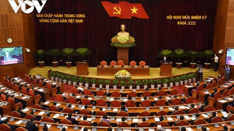 (VOVWORLD) - បន្ទាប់ពីរយៈពេល ២,៥ ថ្ងៃធ្វើការ នាព្រឹកថ្ងៃទី ១៧ ឧសភា នៅទីស្នាក់ការគណៈកម្មាធិការមជ្ឈិមបក្ស កិច្ចប្រជុំពាក់កណ្តាលអាណត្តិនៃគណៈកម្មាធិការមជ្ឈិមបក្សកុម្មុយនិស្តវៀតណាម នីតិកាលទី ១៣ បានបើកសម័យប្រជុំបិទ។ អគ្គលេខាបក្ស លោក Nguyen Phu Trong អញ្ជើញធ្វើជាអធិបតី និងថ្លែងសុន្ទរកថាដ៏សំខាន់មួយនៅឯពិធីបិទកិច្ចប្រជុំ។