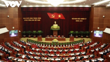 (VOVWORLD) - នាព្រឹកថ្ងៃទី ១៥ ឧសភា នៅទីក្រុងហាណូយ សន្និសីទពាក់កណ្តាលអាណត្តិនៃគណៈកម្មាធិការមជ្ឈិមបក្សលើកទី ១៣ បានបើកក្រោមអធិបតីភាពរបស់អគ្គលេខាបក្ស Nguyen Phu Trong។