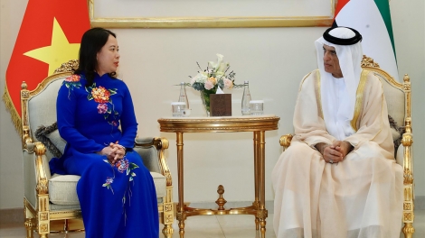 (VOVWORLD) - ក្នុងក្របខ័ណ្ឌនៃសកម្មភាពនានានៅអេមីរ៉ាតអារ៉ាប់រួម (UAE) នាថ្ងៃទី ៥ ឧសភា អនុប្រធានរដ្ឋវៀតណាមលោកស្រី Vo Thi Anh Xuan បានជួបពិភាក្សាការងារជាមួយ ព្រះមហាក្សត្រ Ras Al Khaimah Sheikh Saud bin Saqr al Qasimi។
