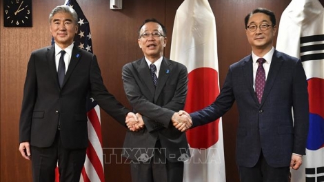 (VOVWORLD) - ហើយ ប្រទេសទាំង៣ បានព្រមព្រៀងសហ ប្រតិបត្តិការគ្នា ដើម្បីបង្កើនសមត្ថភាពឆ្លើយតប សំដៅសម្រេចបាននូវគោលដៅនៃការ រំសាយអាវុធនុយក្លេអ៊ែរទាំងស្រុងនៅឧបទ្វីបកូរ៉េ ស្របតាមសេចក្ដីសម្រេចចិត្តរបស់ ក្រុមប្រឹក្សាសន្តិសុខអង្គការសហប្រជាជាតិ។