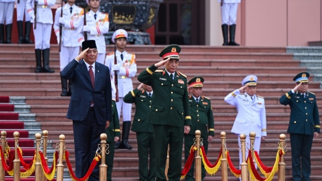 (VOVWORLD) - នាព្រឹកថ្ងៃទី៣០ ខែកក្កដា នៅទីស្នាក់ការក្រសួងការពារប្រទេសវៀតណាម លោកនាយឧត្តមសេនីយ៍ Phan Van Giang រដ្ឋមន្ត្រីក្រសួងការពារប្រទេសវៀតណាម បានអញ្ជើញជាអធិបតីក្នុងពិធីទទួលបដិសណ្ឋារកិច្ចចំពោះគណៈប្រតិភូក្រសួងការពារជាតិឥណ្ឌូនេស៊ី ដឹកនាំដោយលោករដ្ឋមន្ត្រី Sjafrie Sjamsoeddin មកបំពេញទស្សន កិច្ចជាផ្លូវការនៅវៀតណាមចាប់ពីថ្ងៃទី ២៩ ដល់ថ្ងៃទី ៣០ ខែកក្កដា។