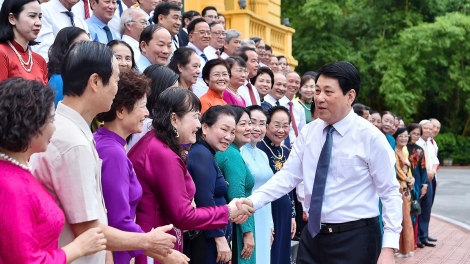 (VOVWORLD) - ថ្លែងមតិក្នុងជំនួបនេះ លោកប្រធានរដ្ឋ លឿង គឿង បានអះអាងថា វៀតណាម កំពុងឈរនៅចំពោះមុខរបត់ជាប្រវត្តិសាស្ត្រ ដើម្បីឈានចូលយុគសម័យថ្មីនៃការ អភិវឌ្ឍដ៏ខ្លាំងក្លា និងប្រកបដោយវិបុលភាព។