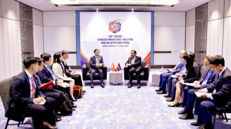 (VOVWORLD) - ក្នុងក្របខ័ណ្ឌនៃសកម្មភាពរបស់គណៈប្រតិភូវៀតណាមក្នុងកិច្ចប្រជុំរដ្ឋមន្ត្រីការបរទេសអាស៊ានលើកទី ៥៨ (AMM-58) កាលពីថ្ងៃទី ៩ កក្កដា ឧបនាយករដ្ឋមន្ត្រី និងជារដ្ឋមន្ត្រីក្រសួងការបរទេសវៀតណាមលោក Bui Thanh Son បានចូលរួមពិធី បើក និងសម័យប្រជុំពេញអង្គនៃ AMM-58 នៅមជ្ឈមណ្ឌលសន្និសីទ Kuala Lumpur ប្រទេសម៉ាឡេស៊ី។