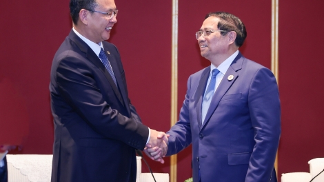 នាយករដ្ឋមន្ត្រី លោក ហ្វាម មិញ ជិញ អញ្ជើញជួបពិភាក្សាជាមួយនាយករដ្ឋមន្ត្រីចិនលោក Li Qiang