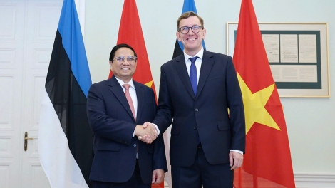 (VOVWORLD) - បន្តដំណើរបំពេញទស្សនកិច្ចផ្លូវការនៅអេស្តូនី នារសៀល ថ្ងៃទី ៦ មិថុនា នៅរដ្ឋធានី Tallinn នាយករដ្ឋមន្ត្រីវៀតណាមលោក ហ្វាម មិញជីញ បានជួបពិភាក្សាការងារជាមួយនាយករដ្ឋមន្ត្រីអេស្តូនីលោក Kristen Michal។