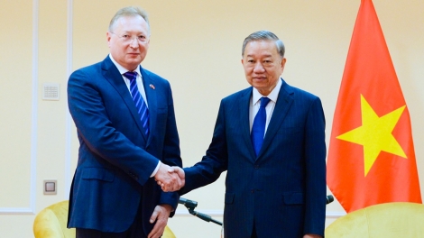 (VOVWORLD) - នេះជាការបញ្ជាក់របស់ប្រធានសភារឌូម៉ាជាតិ (សភាជាន់ទាប) នៃសហព័ន្ធរុស្ស៊ី លោក Vyacheslav Volodin ក្នុងពិធីទទួលជួបជាមួយអគ្គលេខាបក្ស លោក តូ ឡឹម នៅព្រឹកថ្ងៃទី ១០ ឧសភានេះ នៅទីក្រុងមូស្គូ ក្នុងអំឡុងដំណើរទស្សនកិច្ចផ្លូវការរបស់លោកអគ្គលេខាបក្សនៅសហព័ន្ធរុស្ស៊ី និងចូលរួមអបអរសាទរខួបលើកទី ៨០ នៃទិវាជ័យជំនះក្នុងសង្គ្រាមការពារជាតិដ៏មហិមា របស់លោកអគ្គលេខាបក្ស។